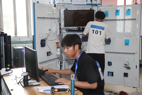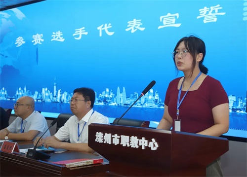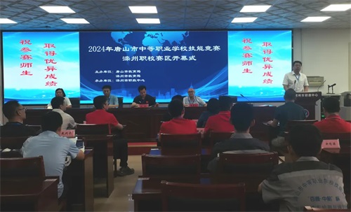 唐山市教育局黨組成員、副局長趙乾講話并宣布開賽。他指出:全市中等職業(yè)學(xué)校技能大賽,是深化唐山職業(yè)教育產(chǎn)教融合、引領(lǐng)教育教學(xué)改革的有力抓手,是提升唐山職業(yè)院校人才培養(yǎng)質(zhì)量、檢驗教育教學(xué)成果的重要舞臺,是營造職業(yè)教育改革發(fā)展社會環(huán)境、服務(wù)技能型社會建設(shè)的有效舉措。他希望大家共同努力,將這一賽事打造成唐山職業(yè)教育的金字招牌和特色標識,為建設(shè)教育強市再塑新動能;希望參賽代表隊和選手沉著參賽、奮力拼搏,展示良好形象,發(fā)揮最佳水平,爭取優(yōu)異成績。