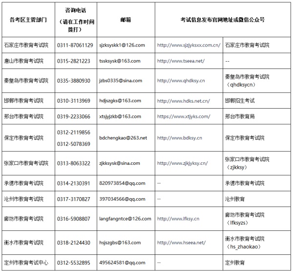 九、各考區(qū)網(wǎng)址、微信公眾號及咨詢電話