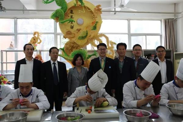 4月19日下午,在市外事辦副調(diào)研員徐燕的陪同下,韓國(guó)楊州市副市長(zhǎng)金大淳一行5人來(lái)學(xué)校參觀(guān)訪(fǎng)問(wèn)。校長(zhǎng)任典云等校領(lǐng)導(dǎo)陪同客人參觀(guān)了山東藍(lán)海職業(yè)學(xué)校中餐烹飪、面點(diǎn)實(shí)訓(xùn)室、名師食品雕刻室,觀(guān)看了老師和同學(xué)們烹飪和食品雕刻表演并品嘗學(xué)生制作的菜品,對(duì)學(xué)校產(chǎn)教融合、產(chǎn)學(xué)結(jié)合的辦學(xué)特色給予高度贊許。