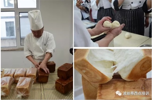 學(xué)習(xí)過(guò)程中,森下老師對(duì)同學(xué)們的面團(tuán)揉圓手法和面包烘烤出爐過(guò)程進(jìn)行了指導(dǎo),森下老師告訴同學(xué)們,在完成一個(gè)成功的面包時(shí),最重要的就是面團(tuán)揉圓過(guò)程。 在森下老師的耐心指導(dǎo)下,同學(xué)們成功的做出了各種法吐司和柔軟吐司面包。面包組織細(xì)膩,口感松軟,具有彈性。