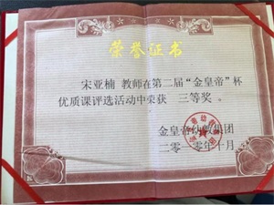 2012年第二屆“金皇帝”杯教師優(yōu)質(zhì)課評比“三等獎”
