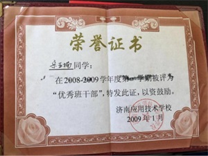 2007年-2008年被評為“優(yōu)秀學生干部”