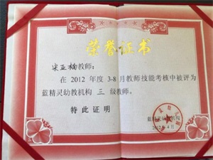 2013年7月被評為歷城區(qū)“優(yōu)秀幼兒教師”