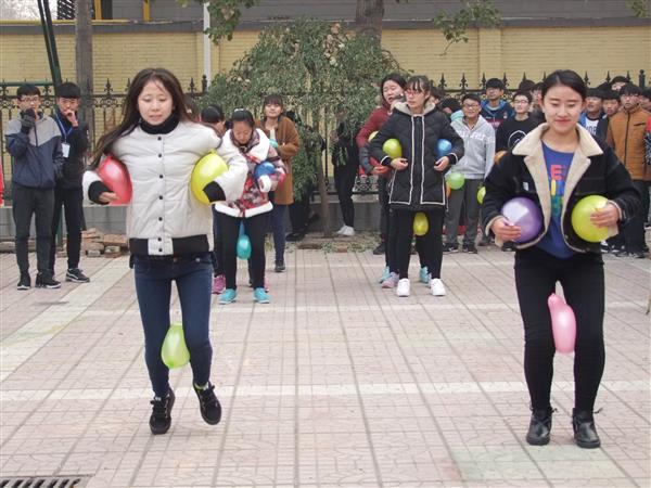 為響應(yīng)團(tuán)中央“走下網(wǎng)絡(luò)、走出宿舍、走向操場(chǎng)”三走活動(dòng)的號(hào)召。11月25日,我校趣味運(yùn)動(dòng)會(huì)在學(xué)校操場(chǎng)成功舉行。來(lái)自各班的代表隊(duì)參加了此次活動(dòng)。趣味項(xiàng)目包括:四人五足、袋鼠跳、單人、團(tuán)體跳繩等比賽。參與其中同學(xué)熱情高漲,隨著裁判員一聲令下四人五足比賽開(kāi)始,各參賽小組組員緊緊綁在一起的腿同時(shí)邁出整齊而堅(jiān)定的步伐,相互扶持著向終點(diǎn)迅速前進(jìn)。觀眾們更是不亦樂(lè)乎,歡呼聲加油聲不時(shí)傳出。場(chǎng)面非常熱烈而有秩序,這充分體現(xiàn)了我校學(xué)生的精神面貌和自身素質(zhì)。經(jīng)過(guò)激烈的比拼:測(cè)繪29班班成為最大贏家獲得團(tuán)體第一名。