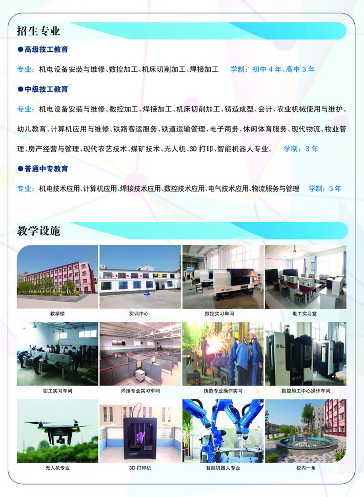 張家口工程技術(shù)學(xué)校(張家口煤礦機(jī)械制造高級(jí)技工學(xué)校)是一所已有六十多年辦學(xué)歷史的國(guó)家級(jí)重點(diǎn)高級(jí)技工學(xué)校,是中煤張家口煤機(jī)公司企業(yè)職工培訓(xùn)基地;學(xué)校是省扶貧辦認(rèn)定的省級(jí)“雨露計(jì)劃”培訓(xùn)示范基地;是河北省“燕趙金藍(lán)領(lǐng)培訓(xùn)”技師培訓(xùn)基地。2007年經(jīng)國(guó)家勞動(dòng)和社會(huì)保障部批準(zhǔn)晉升為高級(jí)技工學(xué)校。 張家口煤礦機(jī)械制造技工學(xué)校始建于1952年,文革期間停辦,1978年恢復(fù)辦學(xué),是原煤炭部直屬重點(diǎn)技工學(xué)校,由原張家口煤機(jī)廠代管。2003年1月經(jīng)河北省教育廳批準(zhǔn),學(xué)校增掛張家口工程技術(shù)學(xué)校牌子,屬普通中專學(xué)校。2003年12月,經(jīng)國(guó)家勞動(dòng)和社會(huì)保障部批準(zhǔn),學(xué)校晉升為國(guó)家級(jí)重..