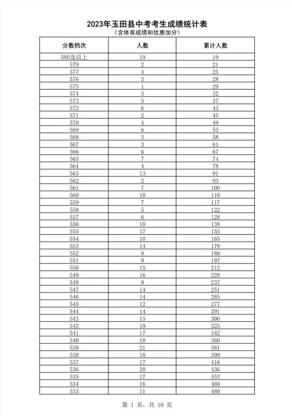 • 2023年玉田縣中考考生成績統(tǒng)計表
