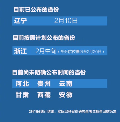 受疫情影響,湖北省教育考試院日前發(fā)布通知稱,考研初試成績公布將與湖北省高校開學(xué)日期同步。截至目前,全國#多省推遲考研成績公布時間#,具體以各省研究生招生網(wǎng)為準(zhǔn)。