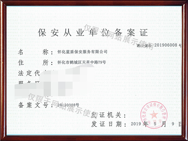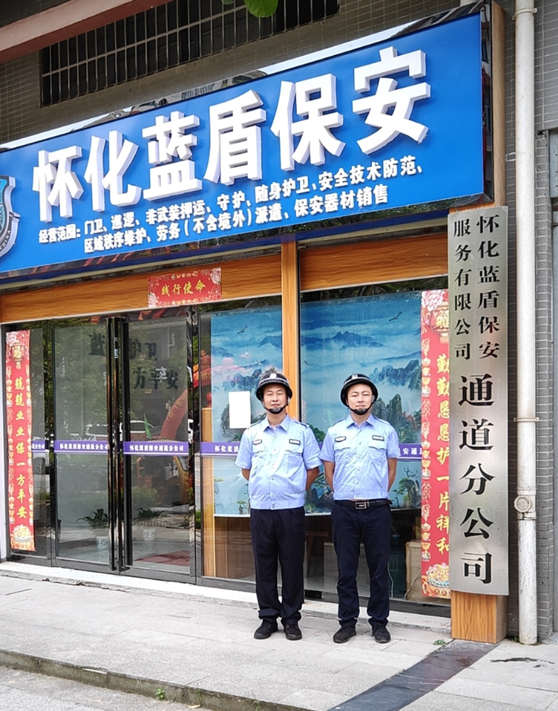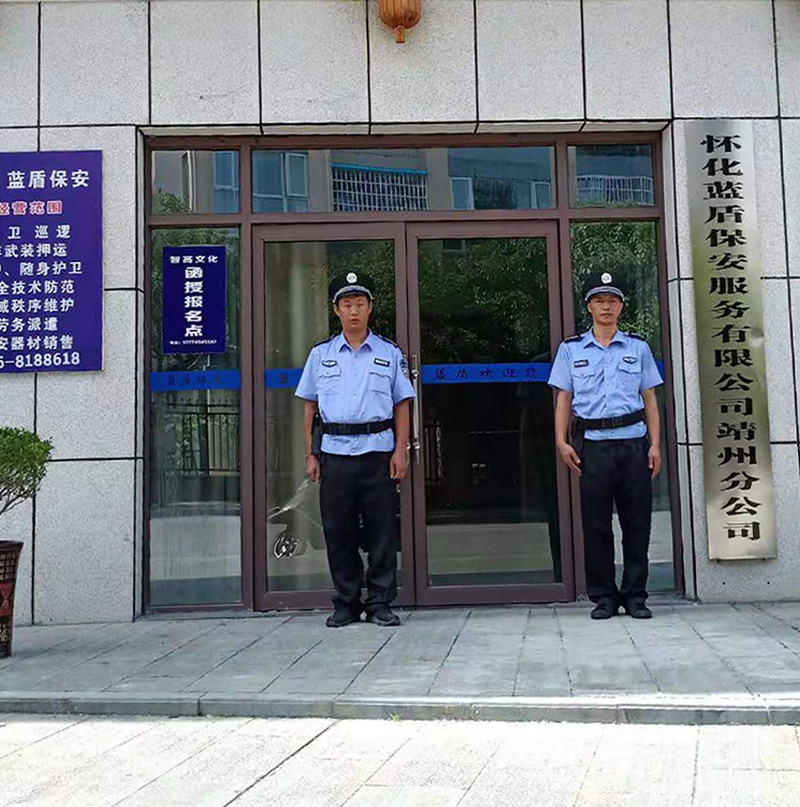 懷化藍(lán)盾保安服務(wù)有限公司是經(jīng)懷化市公安局、省公安廳批準(zhǔn)的專業(yè)從事保安服務(wù)行業(yè)的正規(guī)保安公司。我公司成立于2010年10月,注冊資金人民幣550萬元,下設(shè)靖州縣、通道縣兩個分公司。服務(wù)范圍包括:門衛(wèi)、巡邏、非武裝押運、守護(hù)、隨身護(hù)衛(wèi)、安全技術(shù)防范、區(qū)域秩序維護(hù);勞務(wù)派遣咨詢服務(wù);服裝、消防器材、防身器材的銷售;物業(yè)管理服務(wù);家政服務(wù);保安員培訓(xùn);電子視頻監(jiān)控、紅外線報警設(shè)備、社會公共安全技術(shù)防范系統(tǒng)的設(shè)計、施工、銷售及售后服務(wù)等。