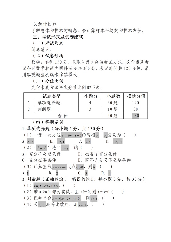 本考試大綱是依據(jù)國(guó)家發(fā)布的《普通高中課程方案》和學(xué)科課程標(biāo)準(zhǔn),同時(shí)結(jié)合我省普通高中和中職學(xué)校數(shù)學(xué)教學(xué)實(shí)際情況編寫制定的。