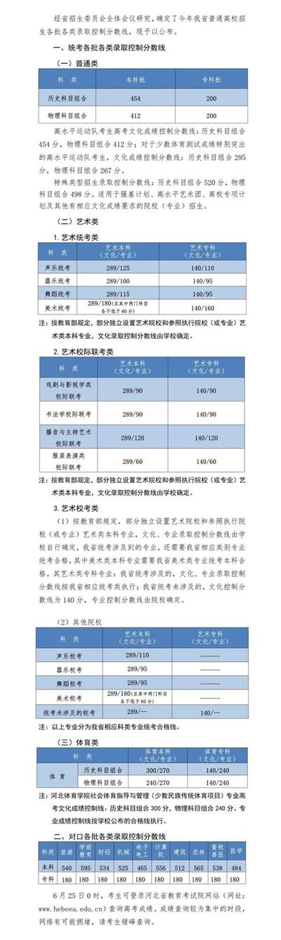 2021年河北省普通高校招生各批各類錄取控制分?jǐn)?shù)線出爐! 6月25日0時(shí)后,河北考生和家長可登錄河北省教育考試院網(wǎng)站(網(wǎng)址:www.hebeea.edu.cn)查詢高考成績! 2021年河北省普通高校招生 各批..